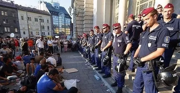 警察阻止难民进入布达佩斯的火车站