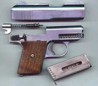 艾莉妈妈这样说,她那把“大乌鸦”MP25手枪是美国特有的一种廉价手枪。航空工程师乔治杰宁斯设计这款枪的目的,就是要让低收入阶层也能买到自卫武器。为了降低造价,“大乌鸦”的枪身改用Zamac锌铝合金浇铸工艺,省去了大量的机加成本。杰宁斯还刻意选择威力小的6.35毫米手枪弹来配合铸造的枪身。“大乌鸦”因此也得以采用最简单的自由枪机自动原理,并将整枪的零件减少到30个,几乎是一般手枪的1/3。
